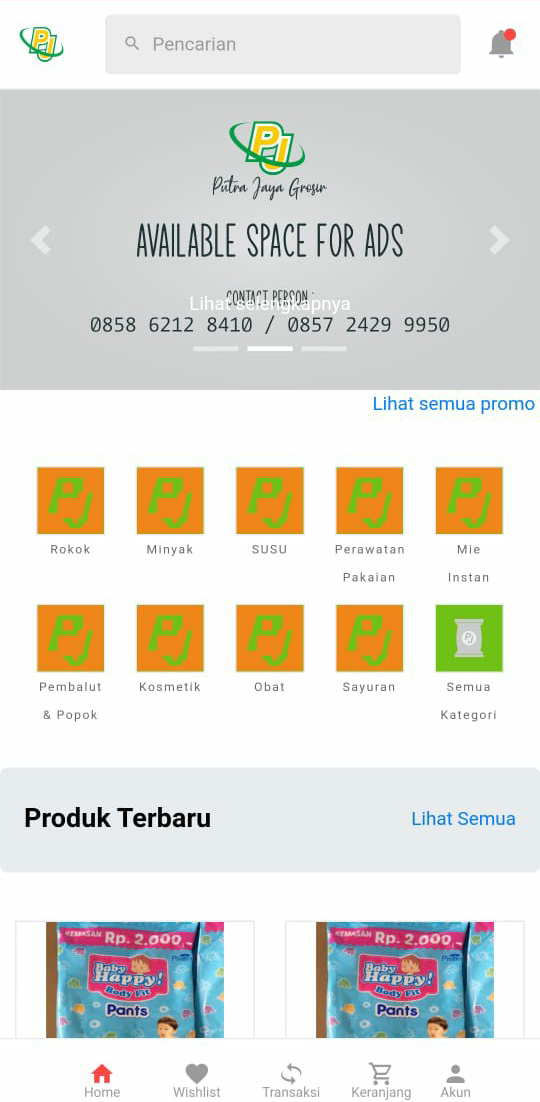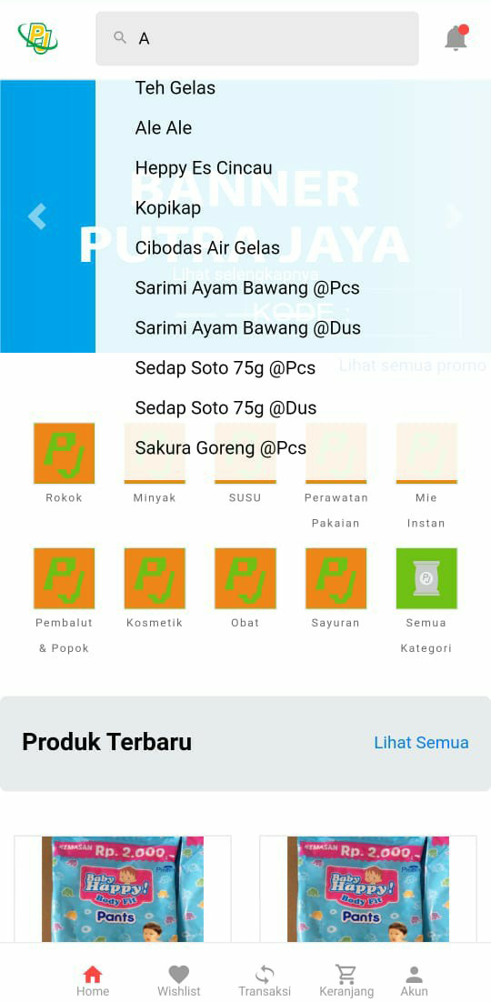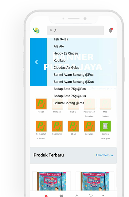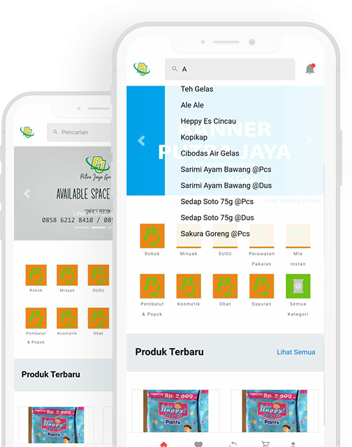 Kini hanya dalam sentuhan jari, belanja untuk kebutuhan warung atau pribadi anda di Putra Jaya Grosir sangat mudah. tinggal klik, belanjaan anda akan langsung diantar oleh kami.
